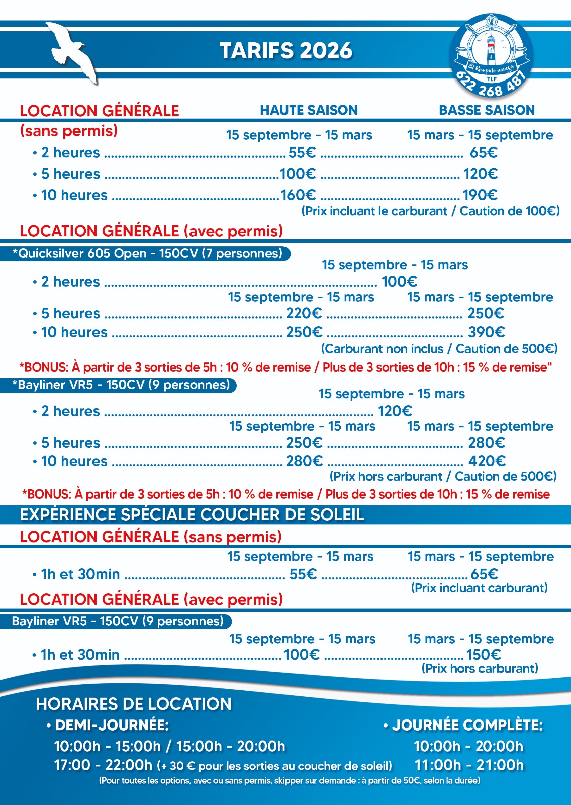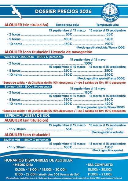 En el puerto deportivo y a través de empresas locales que ofrecen excursiones y alquileres privados.