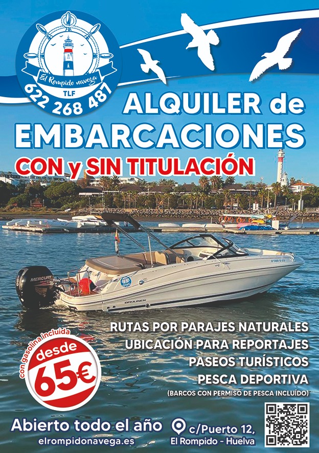 Alquiler barco El Rompido | Rutas turísticas | Pesca deportiva | Sesiones fotográficas | Paseos en Barco